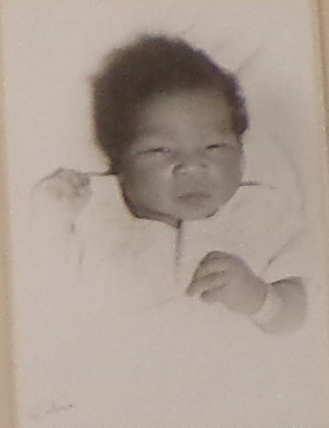 This is me. Robin Nathania Mathes Peacher Landry. However, at the time that this picture was taken, my name was simply, Robin Nathania (pronounced by my family as “nuh-than-ee-yuh”, which I hated and decided to change to “na-tahn-ya” when I realized that it was my name, and I could say it any way that made me happy) Mathes. This photo was probably taken some time between January 9 and January 16, 1963. I use those weirdly specific dates because it appears to be my hospital photo, the hospital bracelet on my left wrist and the fact that I found the photo among my mother’s things after she died in a folder with my hospital birth certificate, complete with sketch of the hospital where I was born and my vital statistics on one side and my inky baby footprints on the other.