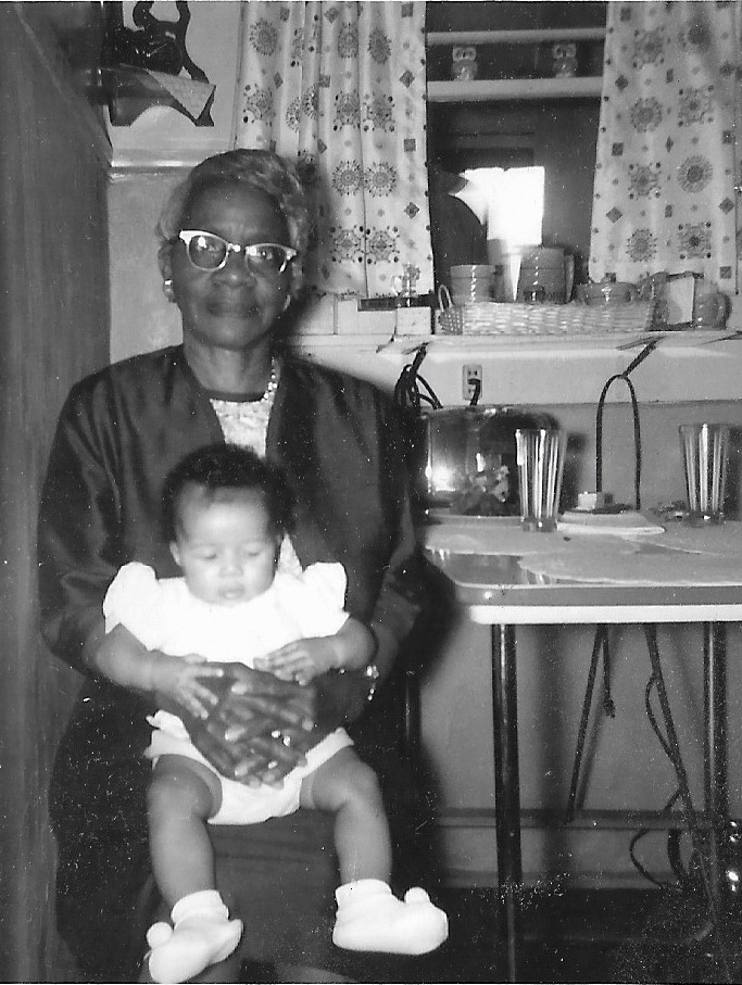 Probably near the time this photo was taken, Grandma Lula had some to visit and was holding me while my mother and grandmother (her granddaughter and daughter, respectively) were shopping. Even in the black and white photo, it’s pretty obvious that my skin tone is decidedly lighter than Grandma Lula’s, (a gift from my father’s Irish ancestors, according to Ancestry.com DNA testing). Also, I possessed exceptionally “chubby” cheeks, which, although almost universally considered cute on babies of all varieties, had the unfortunate effect of giving my eyes a somewhat “squinty” appearance and it was this that prompted a white woman to approach Grandma Lula and inquire, (supposing my great-grandmother to be the nanny, I guess), “Is that a little ‘Jap baby’ that your employers adopted?” Oh my…cringeworthy on so many levels.